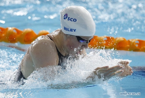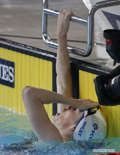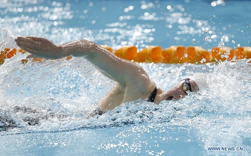 Hannah Miley of Scotland competes during Women's 400m Individual Medley Final during day 1 of the Glasgow 2014 Commonwealth Games at Tollcross International Swimming Centre in Glasgow, Scotland on July 24, 2014. Hannah Miley claimed the title with a Commonwealth Games record time of 4:31.76. (Xinhua/Wang Lili)