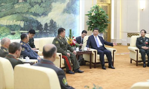 Chinese President Xi Jinping (2nd R) meets with chiefs of general staff of Shanghai Cooperation Organization (SCO) members in Beijing, capital of China, Aug. 28, 2014. (Xinhua/Ding Lin)