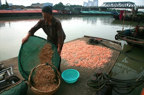 Yang represents the fifth generation of his family who has fished to make a livelihood. In his village near the canal, 80 percent of the residents have this profession at peak times. However, as fish farms have developed quickly, aggravated by the slowing fish resources in the canal, Yang has been focusing on shrimp for the past several years.