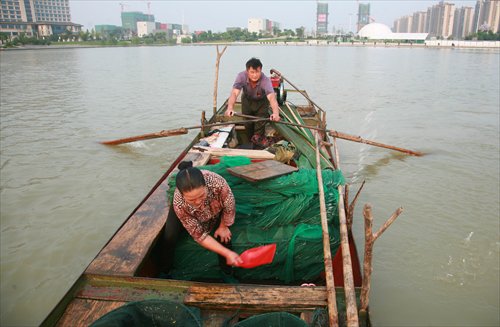 Fisherman Yang Shaogui and his wife Tai Juying live on a boat in Yangzhou, Jiangsu Province. For decades they have floated on the Beijing-Hangzhou grand canal and fished for a living.