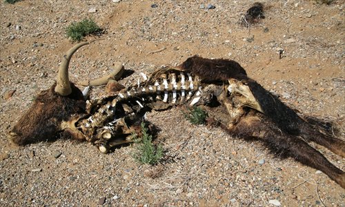 The carcass of an animal lying on a stretch of road known as "the valley of the dead." Photo: Courtesy of Yang Shuo