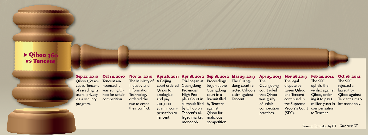 Tencent said in a reply e-mailed to the Global Times Thursday it was "gratified" about the ruling, "which resolved the battle between the two companies in a legal way."