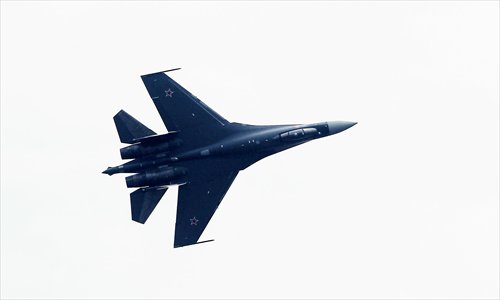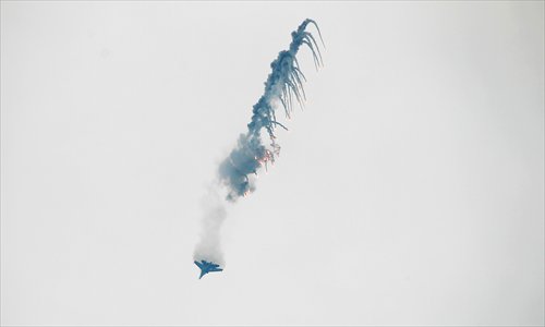 A Sukhoi SU-35 from Russia performs at the 10th China International Aviation and Aerospace Exhibition in Zhuhai, Guangdong Province on November 11. Photo: Cui Meng/GT