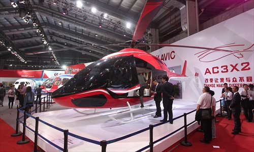 The AC3X2 helicopter made by the Aviation Industry Corporation of China (AVIC) on display at the 10th China International Aviation and Aerospace Exhibition in Zhuhai, Guangdong Province, on November 12. Photo: Cui Meng/GT
