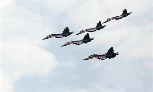 The Su-27 fighter, the fastest plane to appear at Airshow China, tops out at 2,500 kilometers per hour. Photos: Cui Meng/GT