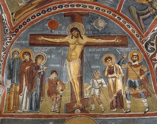 A painting of Jesus Christ in a cave in Cappadocia.