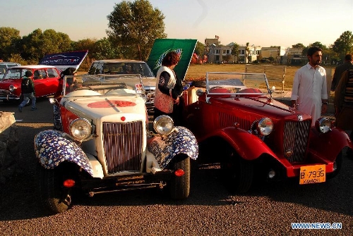 People visit the third Islamabad Auto Show in Islamabad, capital of Pakistan, Nov. 23, 2014. The third Islamabad Auto Show 2014 held by PakWheels displayed more than 500 exclusive vehicles, including vintage cars, sports cars, etc. (Xinhua/Saadia Seher)