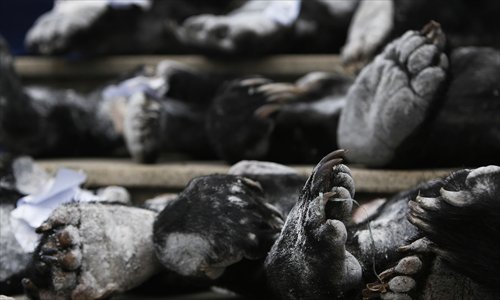 Large number of bear paws were seized in a raid led by Yunnan police in January. The police busted a gang of six for trafficking protected animals in the raid. Photo: CFP