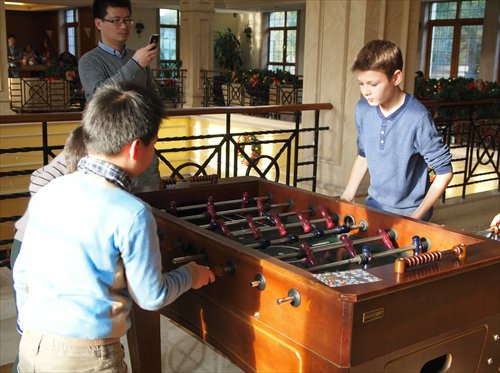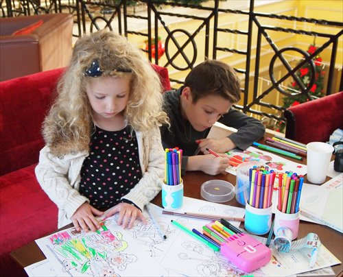 Children paint, take a photo with Saint Nicolas and play foosball. Photos: Ni Dandan/GT