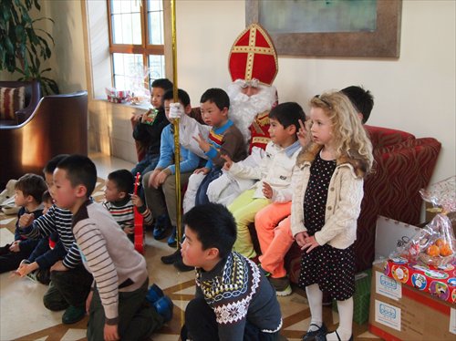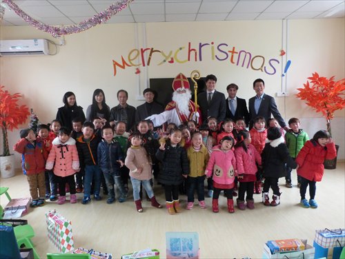 About 30 children between 3 and 6 years old at the migrant children's school in Minhang district received the gifts donated by the Luxembourg community in Shanghai. Even though the religious background of Saint Nicolas is probably far beyond their understanding, they were intrigued by his origin story. They also danced and sang to thank Saint Nicolas for bringing the gifts.