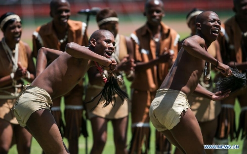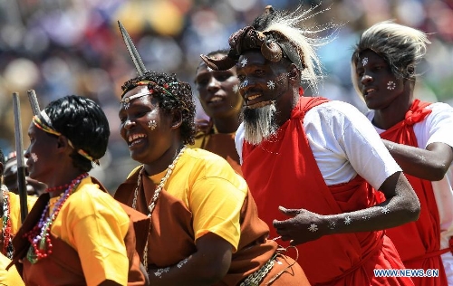 Actors perform during the 51th Jamhuri Day (Independence Day) celebration at the Nyayo National Stadium in Nairobi, capital of Kenya, Dec. 12, 2014. Kenya got its independence from British rule in 1963. (Xinhua/Meng Chenguang)