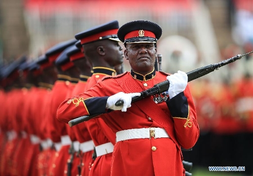 Kenyan soldiers parade during the 51th Jamhuri Day (Independence Day) celebration at the Nyayo National Stadium in Nairobi, capital of Kenya, Dec. 12, 2014. Kenya got its independence from British rule in 1963. (Xinhua/Meng Chenguang)