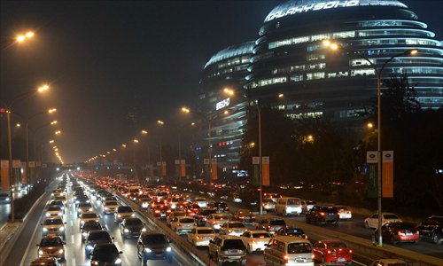 Bad traffic on Beijing's second ring road on November 13, after the odd-even plate limit ended Photo: CFP