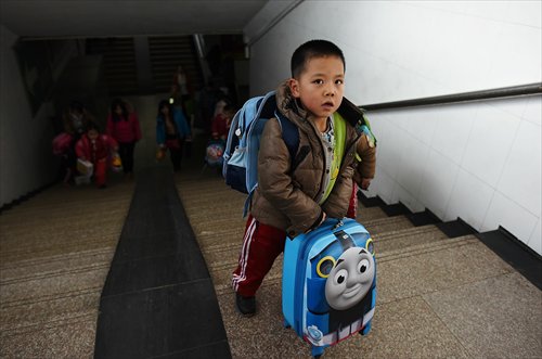 "If we want to send her to a local school in Beijing, we have to get seven different certificates. To get some of the certificates, we have to travel back to our hometown. But we are so busy that we didn't have time for it, and we even have no time to take good care of her," Pei Yong, the father of Pei Xiaotong, who regularly works from 5 am to 10 pm in an open market, told the Global Times.