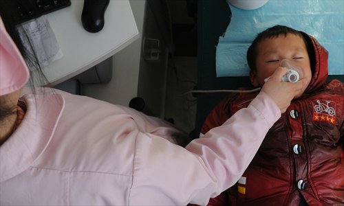 A child suffering from lead pollution under medical treatment in Anhui Province in 2011 Photo: CFP