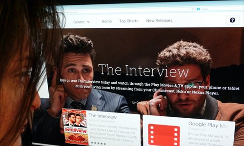 A woman looks at the Google Play purchase page for the Sony film The Interview, in Washington, DC on Wednesday. Entertainment giant Sony released The Interview - a movie that outraged North Korea - online for US viewers on Wednesday. Photo: AFP