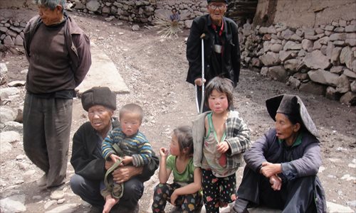 Residents of Qianjin, a Yi ethnic village established in late 1950s as a leper colony, wait for a charity to distribute vegetables and clothes on June 17 in Xide county, Liangshan Yi Autonomous Prefecture, Sichuan Province. Photo: Huang Jingjing