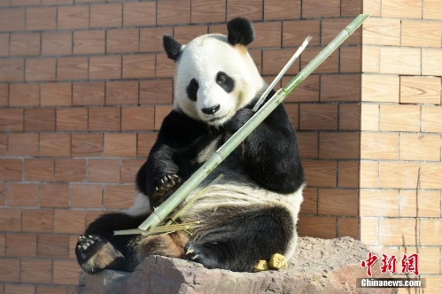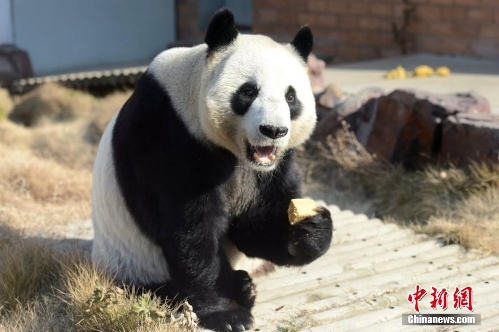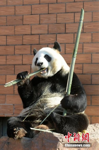 Panda named Xinyue and Zhuyun greet their fourth New Year in Taihu National Wetland Park in east China's Jiangsu Province, January 1, 2015. (Photo Source: xinhuanet photo/Chinanews.com)