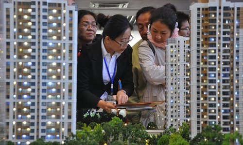 Consumers ask for information at a house sales office in Rizhao, East China's Shandong Province. Photo: CFP