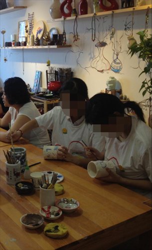 Children learn about making pottery at a SZCSA class. Photo: Courtesy of Shanghai Zhongzhi Community Service Agency