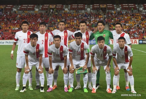 Players of China line up ahead of a Group B match between China and Uzbekistan of the AFC Asian Cup in Brisbane, Australia, January 14, 2015. Photo: Xinhua
