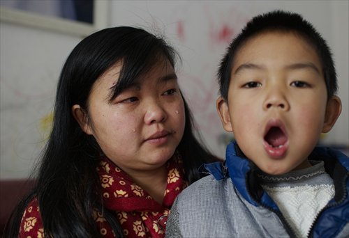 Zhong Xianxin (left) is worried for her son's health, as the boy has respiratory problems. Photo: CFP