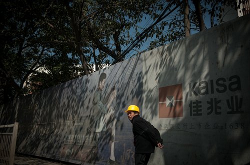 A worker walks past a Kaisa construction site in Shenzhen, South China's Guangdong Province on January 14. Photo: CFP