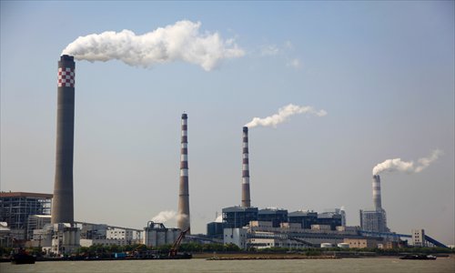 A coal-fired power plant operates next to the Yangtze River. The plant, located in Changshu, East China's Jiangsu Province, began to generate power in 1994. Photo: CFP
