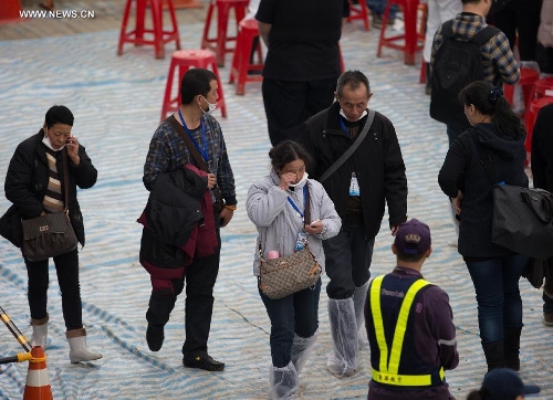 Relatives leave the rescue site after holding a memorial ceremony for plane crash victims in Taipei, southeast China's Taiwan, February 7, 2015. Rescuers on Saturday morning recovered three more bodies, raising the death toll from the TransAsia Airways plane crash to 38. Five passengers are still missing. (Xinhua/Jin Liwang)