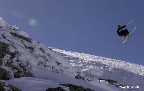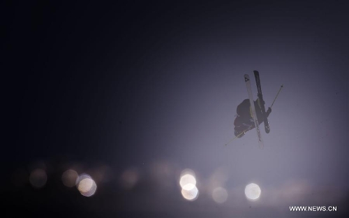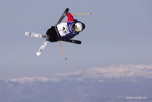 John Leonard of the United States competes during the men's ski slopestyle finals at the 27th World Winter Universiade in Granada, Spain, Feb. 9, 2015. (Xinhua/Fei Maohua)