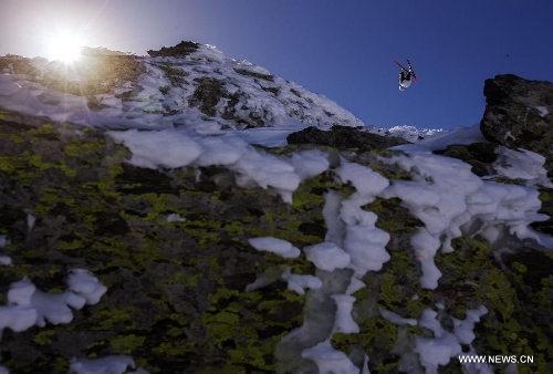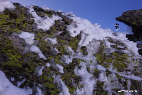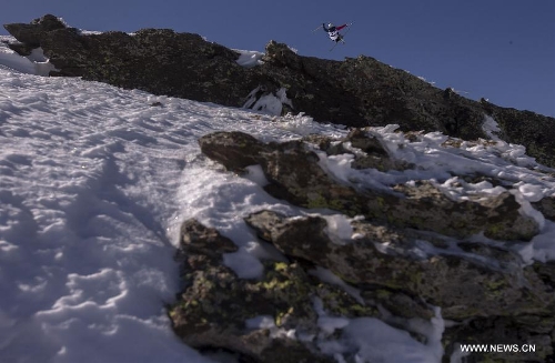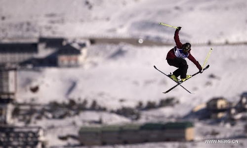 Jorge Montoya of Spain competes during the men's ski slopestyle finals at the 27th World Winter Universiade in Granada, Spain, Feb. 9, 2015. (Xinhua/Fei Maohua)