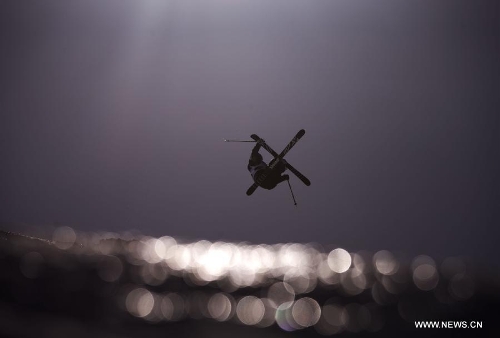 Petr Kordyuk of Russia competes during the men's ski slopestyle finals at the 27th World Winter Universiade in Granada, Spain, Feb. 9, 2015. (Xinhua/Fei Maohua)