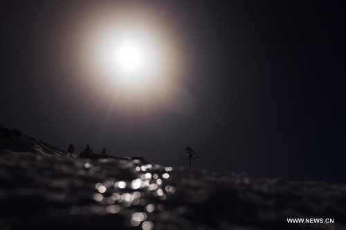 Dmitry Makarov of Russia competes during the men's ski slopestyle finals at the 27th World Winter Universiade in Granada, Spain, Feb. 9, 2015. (Xinhua/Fei Maohua)