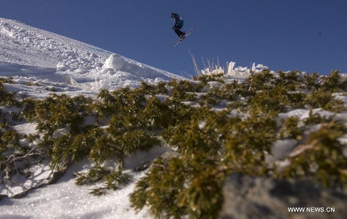 Bartlomiej Sibiga of Poland competes during the men's ski slopestyle finals at the 27th World Winter Universiade in Granada, Spain, Feb. 9, 2015. (Xinhua/Fei Maohua)