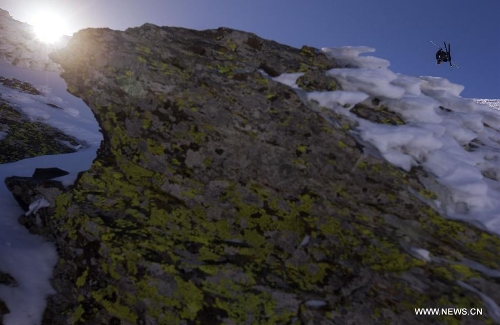 Fabian Braitsch of Austria competes during the men's ski slopestyle finals at the 27th World Winter Universiade in Granada, Spain, Feb. 9, 2015. Braitsch claimed the title with 81.83 points in the event. (Xinhua/Fei Maohua)