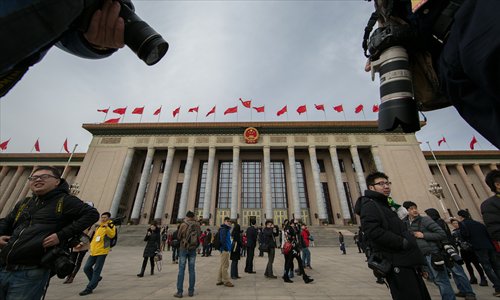 Photographers working outside the Great Hall of the People during the "two sessions" on March 8 2014 Photo: IC