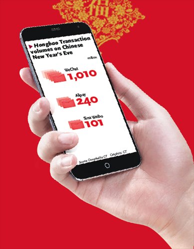 China's Internet giants, mainly Tencent Holdings and Alibaba Group Holding, enticed millions of users to the country's mobile payment market with the use of digital hongbao (cash-filled red envelopes) during the Spring Festival holidays, analysts said on Tuesday.