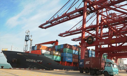A container ship at Lianyungang Port in East China's Jiangsu Province Photo: CFP