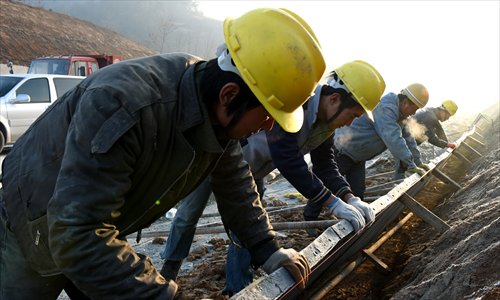 Workers on a construction site for an expressway project in Northwest China's Shaanxi Province Photo: IC