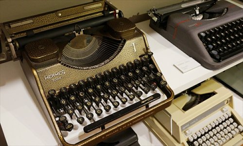 Hermes typewriters are on display at a temporary exhibition in the Musée des Arts et Sciences.