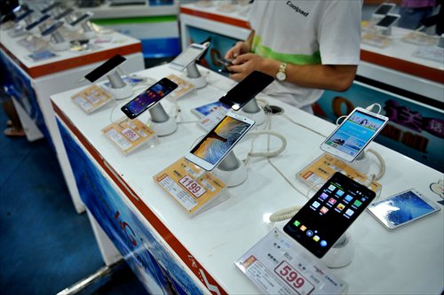 Different mobile phones offered in a store in Taiyuan, North China's Shanxi Province Photo: CFP