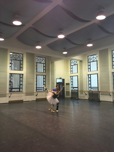 Dancers Wang Ye (front) and Paulo Arrais practice on Tuesday at the National Ballet of China for their Friday performance of Swan Lake at the NCPA. Photo: Lu Qianwen/GT