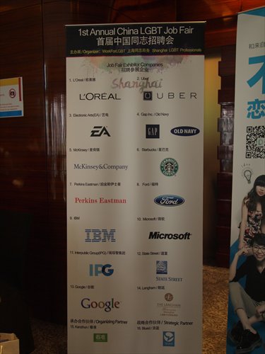 This was the country's first LGBT (lesbian, gay, bisexual, and transgender) job fair and it was held on a Saturday afternoon in a hotel in trendy Xintiandi. Organizers said that it was the first time in China companies had reached out to the LGBT community in support of equality, diversity and inclusion in employment.