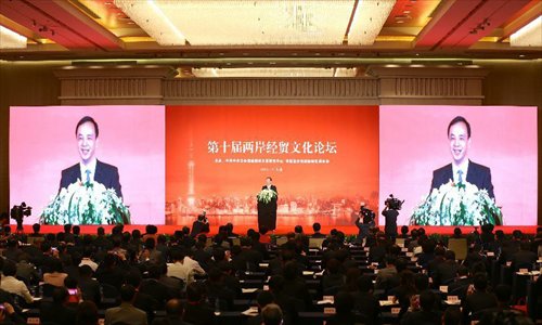 Photo taken on May 3, 2015 shows the opening ceremony of the 10th Cross-Strait Economic, Trade and Culture Forum in Shanghai, east China. The 10th Cross-Strait Economic, Trade and Culture Forum, a regular forum between the Chinese mainland and Taiwan, opened in Shanghai on Sunday. Photo: Xinhua