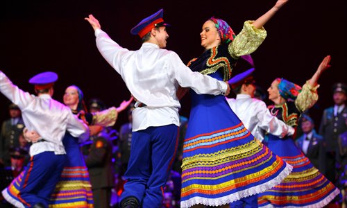 Russian dancers performed classic songs including "Katyusha" and "Moscow Night" in Haikou, Hainan Province, in 2012. Photo: IC