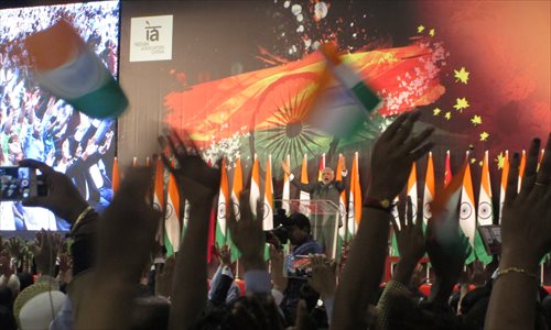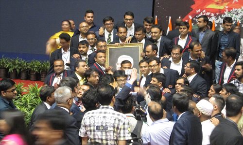 Members of the Indian community burst into applause during the speech given by the PM. Indians in attendance praised Modi as a man of strong mind and said Modi will bring great changes to India in the next five years. Photo: Sun Shuangjie/GT