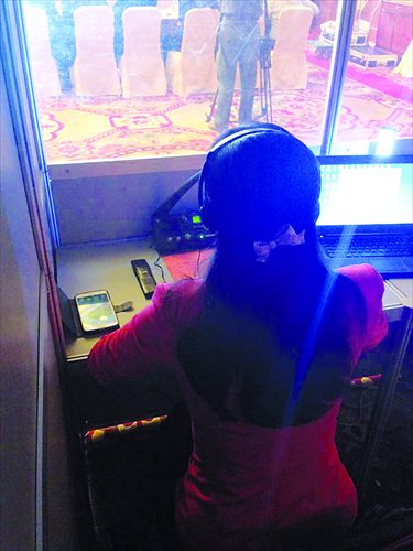 (Above) Simultaneous interpreter Yang Bo at work