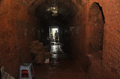Xu Wenyi walks in his cave house in Xiangtan County, central China's Hunan Province, June 10, 2015. Xu Wenyi, 57 years old, digged a cave for living on a hill in Xiangtan County after divorce. Measured three to four meters in width and about 30 meters in depth, the cave, which he called the "Xiyan Cave", cost him six years for digging and now he has lived in it himself for 11 years. (Xinhua/Long Hongtao)