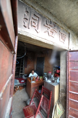 Xu Wenyi checks a doorframe of his cave house in Xiangtan County, central China's Hunan Province, June 10, 2015. Xu Wenyi, 57 years old, digged a cave for living on a hill in Xiangtan County after divorce. Measured three to four meters in width and about 30 meters in depth, the cave, which he called the "Xiyan Cave", cost him six years for digging and now he has lived in it himself for 11 years. (Xinhua/Long Hongtao)