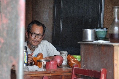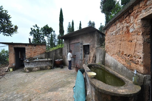 Xu Wenyi checks a water pot in his cave house in Xiangtan County, central China's Hunan Province, June 10, 2015. Xu Wenyi, 57 years old, digged a cave for living on a hill in Xiangtan County after divorce. Measured three to four meters in width and about 30 meters in depth, the cave, which he called the "Xiyan Cave", cost him six years for digging and now he has lived in it himself for 11 years. (Xinhua/Long Hongtao)